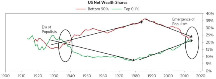最终,美国经济还是要走向滞胀。而滞胀可能会演变出各种活动,因为目前美国是二战以来贫富差距最大的时刻,内部矛盾十分尖锐。